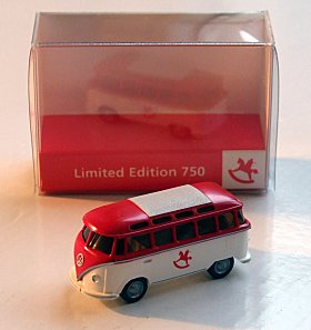Die nächsten beiden Fotos zeigen zwei Messemodelle aus Nürnberg. Links der Audi 50, welcher am WIKING-Stand an die Fachbesucher ausgegeben wurde. Daneben der VW T1 Samba-Bus, welcher von der Spielwarenmesse eG in Auftrag gegeben wurde.