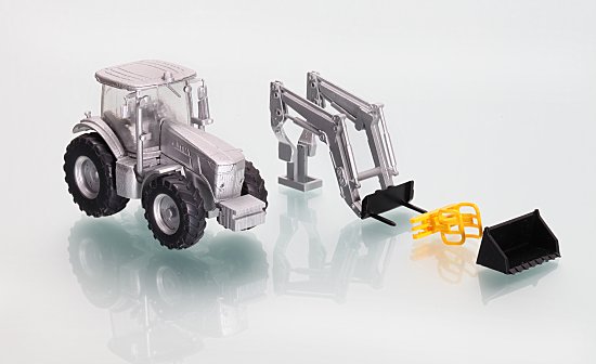 Das Modell stellt gleichzeitig einen Silier- und Häckselwagen dar, dabei ist die Heckklappe zu öffnen.