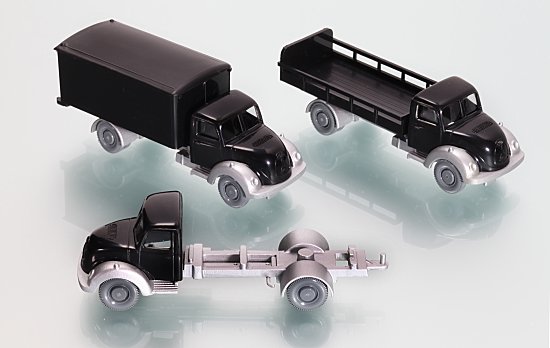 Auch die WIKING Control-87 - Flotte soll Zuwachs erhalten. So sind neue Aufbauten für den MAN TGL vorgesehen. Im Bild die Versionen Preßmüllwagen, Koffer-LKW und Pritsche/Plane-LKW.